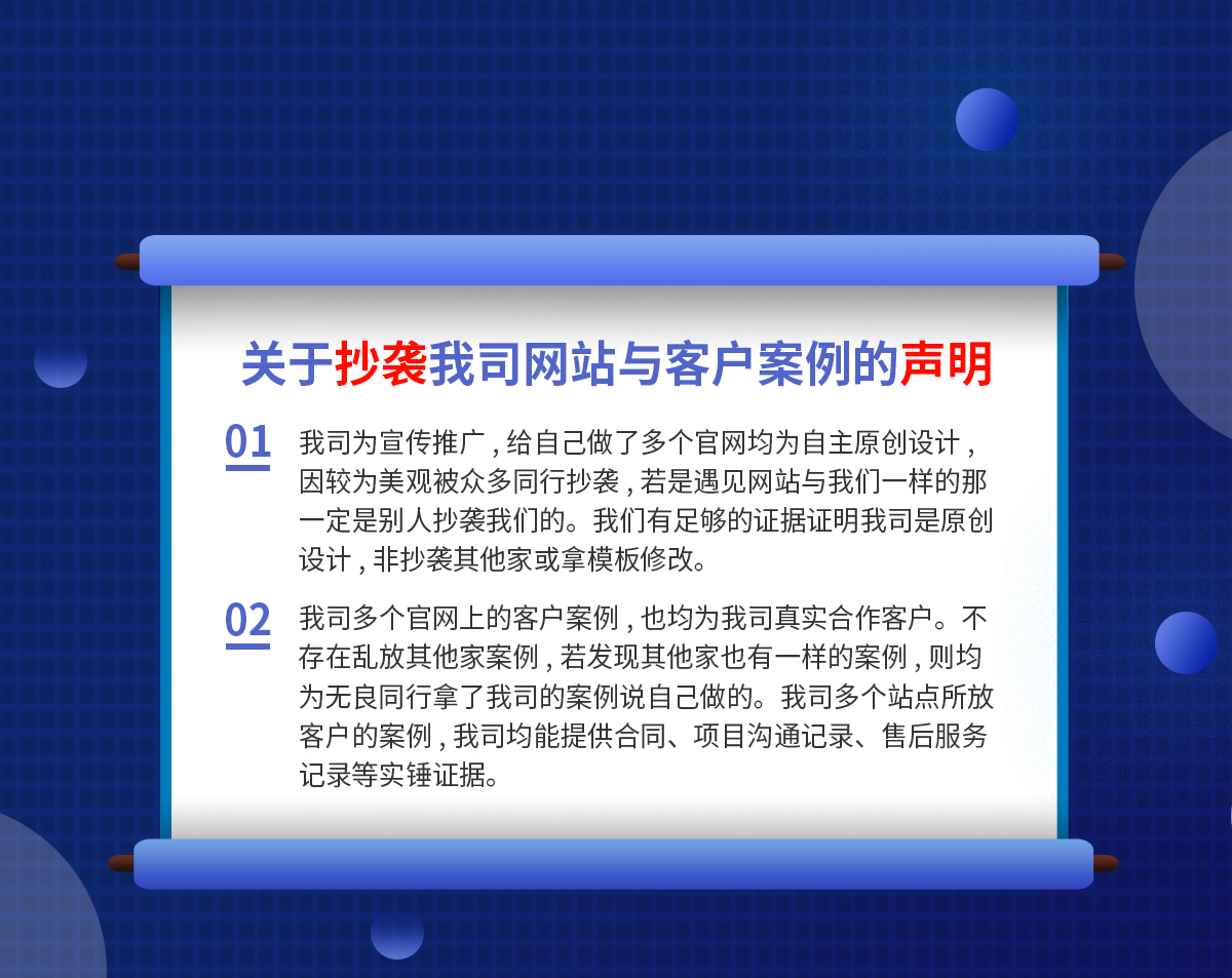 不放心的部分用戶可首頁設計滿意再付費,前期不花一分錢。我們對用戶足夠的信任,對自己的作品也有足夠的信心。